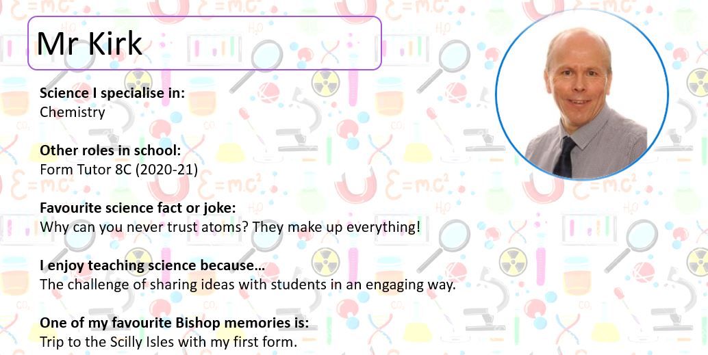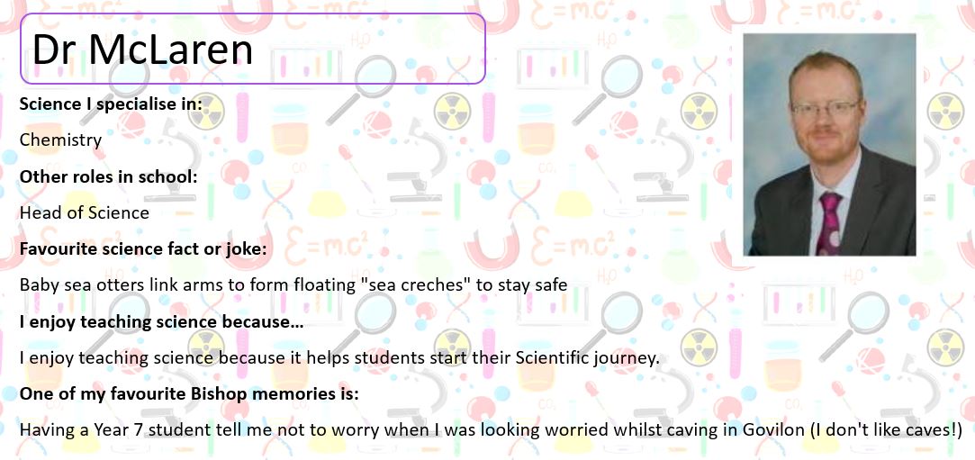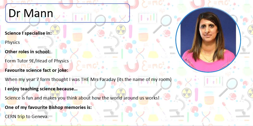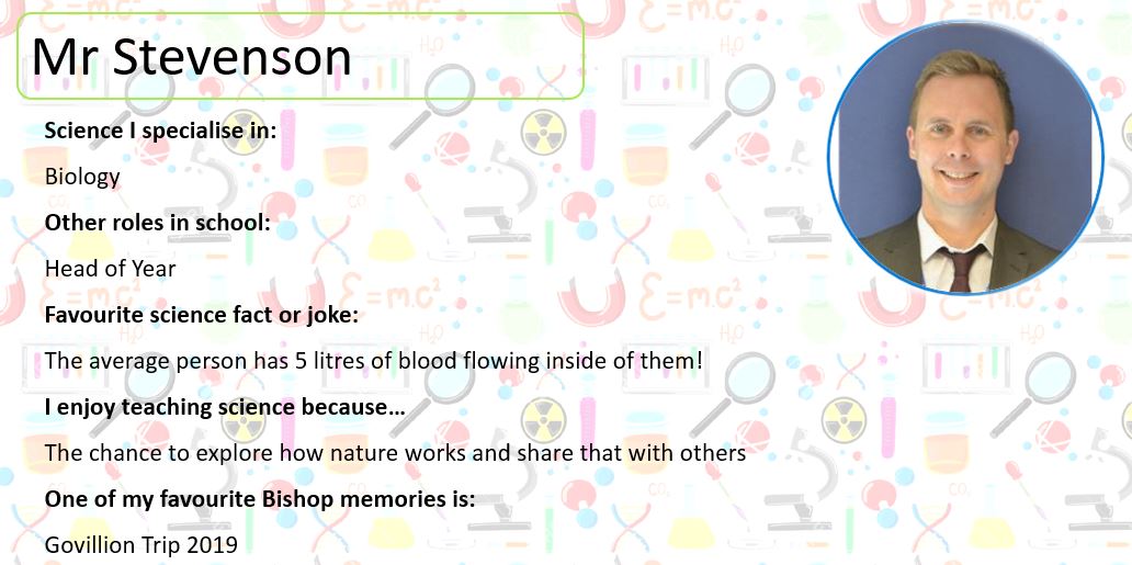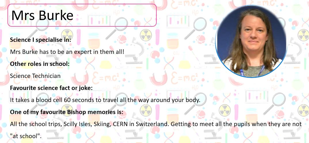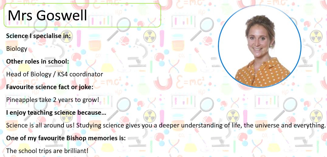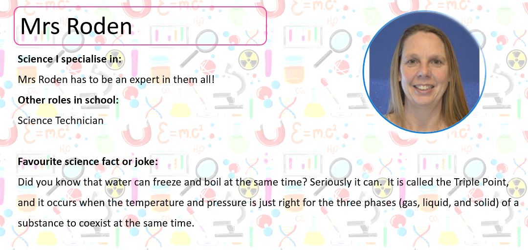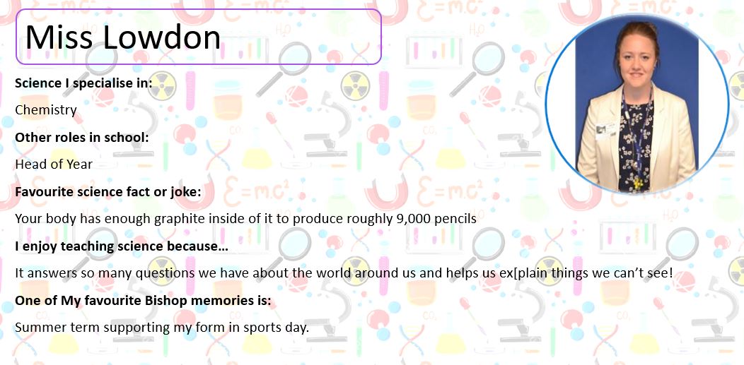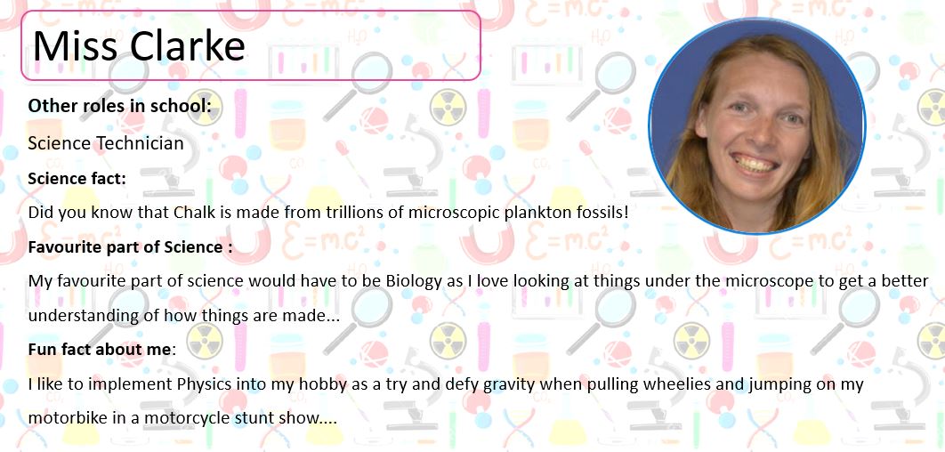 Below, you can meet some of our Science Team; perhaps they will be teaching you next year. At the bottom of the page you can use the buttons to look at some practical activities you can try at home, learn about some famous scientists and complete our science quiz!